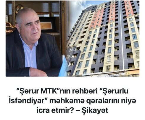 “Şərur” MTK “-nın rəhbəri İsfəndiyar Axundov (Şərurlu İfəndiyar) niyə məhkəmə qərarlarını icra etmir - ŞİKAYƏT